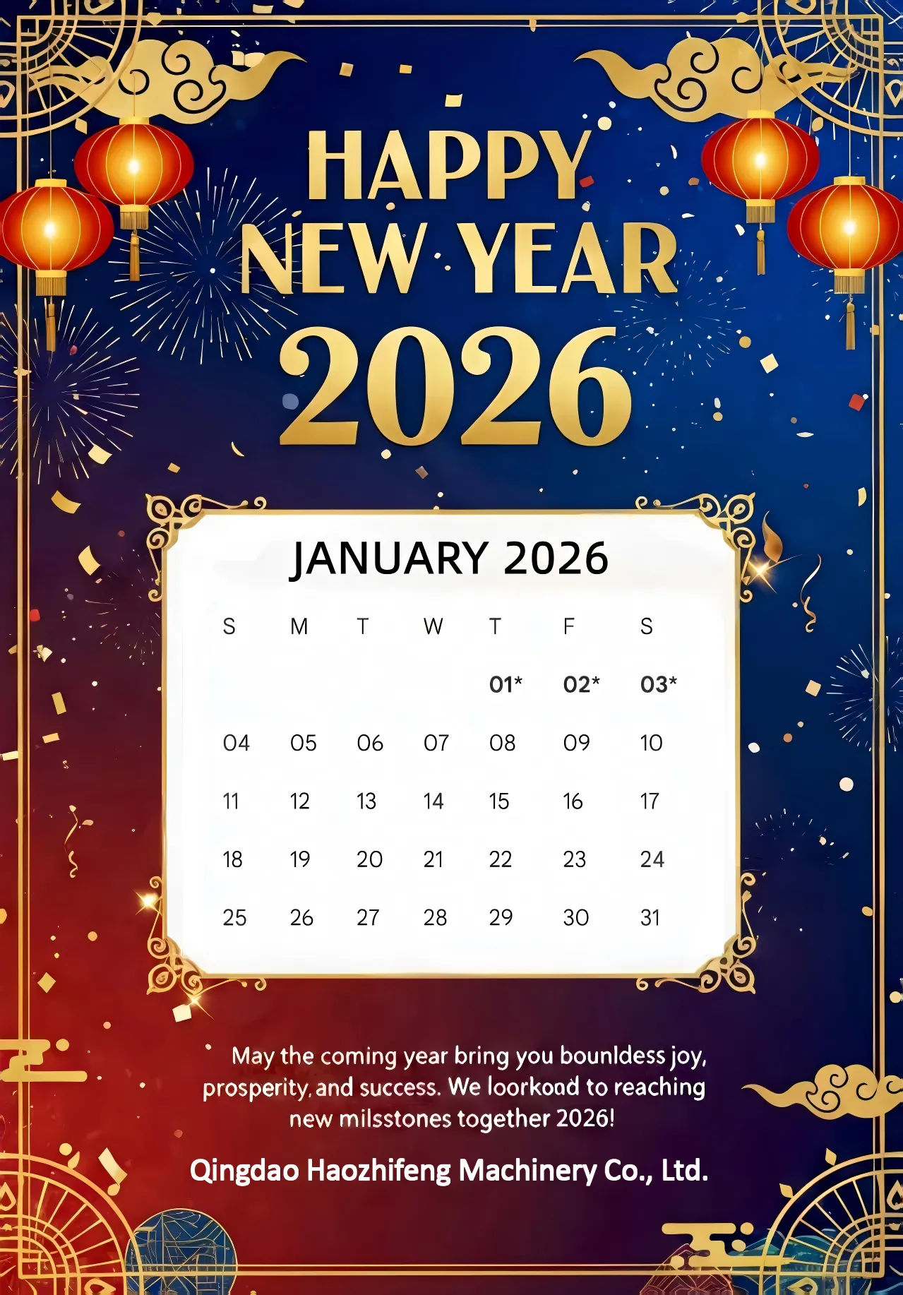 Me atmosferën e gëzueshme të Vitit të Ri që po afron, ne jemi gati për të hyrë në vitin 2026. Në këtë rast të veçantë, i gjithë ekipi i Haozhifeng, një ekip inxhinierësh shumë profesional për të analizuar vizatimet dhe për të zhvilluar. Haozhifeng dëshiron t'ju shpreh falënderimet tona të përzemërta për shoqërinë dhe mbështetjen tuaj gjatë rrugës. Për t'i lënë të gjithë të shijojnë një festë të këndshme dhe për të siguruar mbarëvajtjen e biznesit të mëpasshëm, ne jemi të kënaqur të ndajmë me ju marrëveshjen tonë të festës së Vitit të Ri.